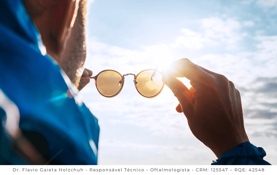 No verão, os óculos de sol deixam de ser apenas um acessório e se torna um item de saúde. O ideal é escolher modelos com proteção UV400, que bloqueiam 100% dos raios UVA e UVB. Não basta a lente ser escura: lentes sem proteção UV podem até ampliar o dano, já que dilatam as pupilas e permitem maior entrada de radiação.